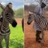 Cuidadores de santuario en Kenia se visten con abrigos rayados para reconfortar a cebra huérfana